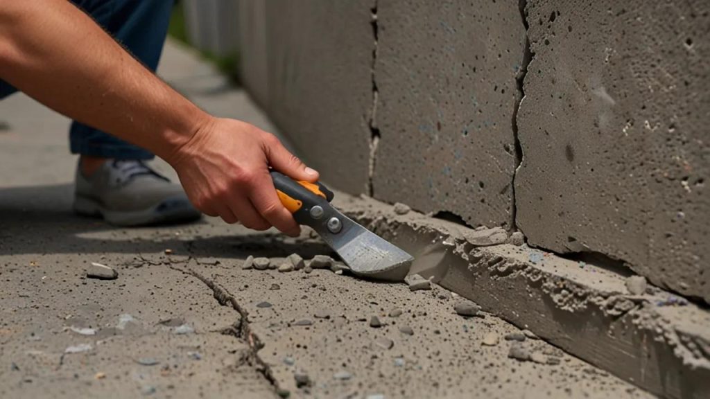 Curățarea este etapa cea mai importantă. Fisura trebuie deschisă ușor, astfel încât materialul de reparație să adere corect. Se îndepărtează praful, resturile și orice material friabil. În unele cazuri, se recomandă și umezirea ușoară a zonei înainte de aplicarea mortarului, pentru a preveni uscarea prea rapidă. Repararea fisurilor fine este relativ simplă. Pentru fisurile sub 2 mm, se folosesc de obicei masticuri acrilice sau poliuretanice. Acestea sunt flexibile și permit betonului să „lucreze” fără să crape din nou. Aplicarea se face direct în fisură, iar surplusul se nivelează cu o spatulă. Este o soluție rapidă și accesibilă, potrivită pentru trotuare și alei.