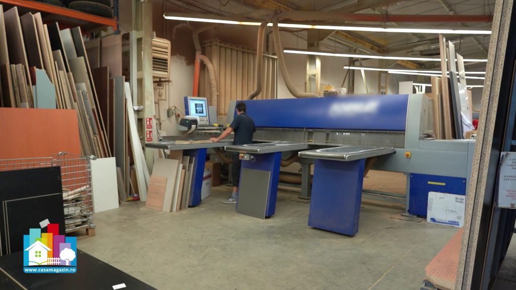 Primul pas în fabricarea mobilierului este debitarea panourilor din PAL laminat și MDF. În zona de producție, utilajele automate tip CNC taie cu precizie panourile mari, conform diagramelor digitale. Aceste mașini sunt folosite în special pentru elementele standard și pentru producția de serie.
