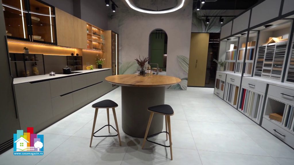 Alexandru Bucur, arhitect interior și proiectant al showroom-ului Inovo Mobili, vizitat de Casa Magazin, subliniază importanța integrării elementelor arhitecturale în designul bucătăriei. O pardoseală perfect dreaptă, un tavan înalt sau ferestrele de mari dimensiuni pot deveni puncte forte dacă mobilierul este adaptat corect.