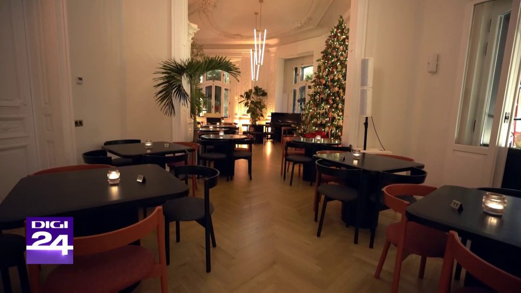 Un punct important al amenajării este barul, conceput ca o reinterpretare modernă a spațiilor intime de început de secol. Formele rotunjite, reflexiile metalice și textura pietrei creează un spațiu coerent, gândit pentru trafic intens, specific zonei HoReCa. Alberto Groșescu subliniază că materialele au fost alese și pentru comportamentul lor în timp, nu doar pentru estetică.