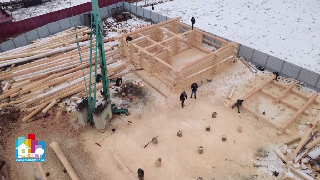 În Vama, județul Suceava, structurile sunt realizate într-un șantier deschis, deoarece dimensiunea buștenilor nu permite manipularea lor într-o hală clasică. Se folosesc piese de până la 12 metri lungime, cu diametre de 40–50 cm, care asigură stabilitate și inerție termică ridicată. Dimensiunea nu este doar estetică, ci influențează direct performanța construcției.
