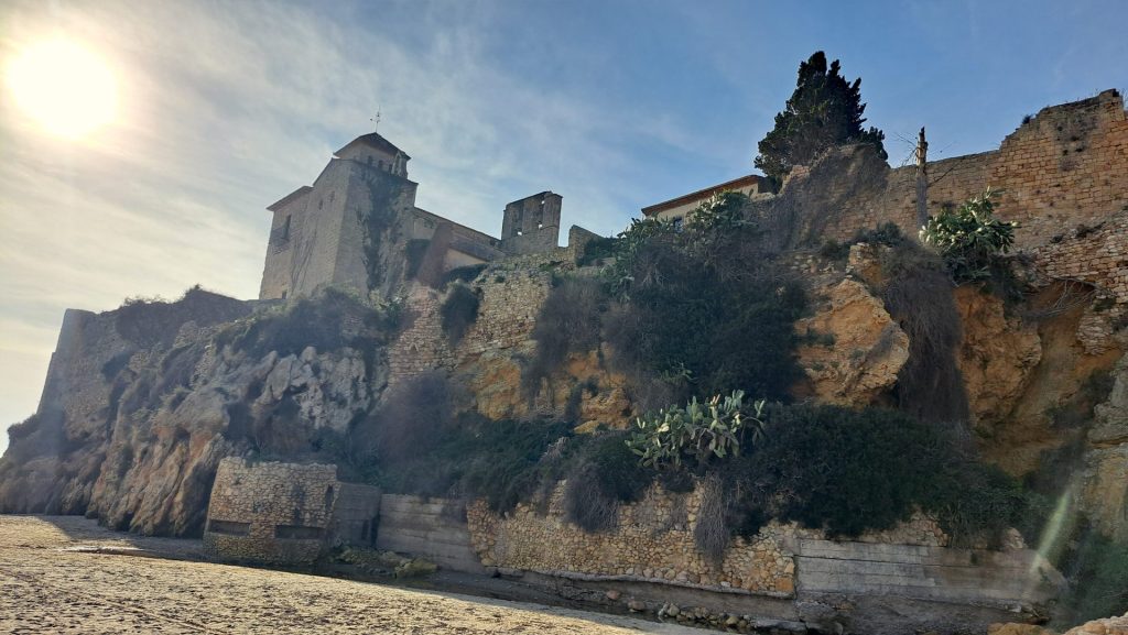 De pe plaja Cala Jovera, Tamarit pare unul dintre acele locuri pe care privirea le fixează imediat: ziduri de piatră pe marginea stâncii, o biserică prinsă în același ansamblu, marea jos. Când intri în istoria lui, imaginea se schimbă. Tamarit nu a fost doar un castel pe coastă, ci o așezare fortificată, închisă în ziduri, cu locuințe, spații de depozitare, viață parohială și o legătură directă cu portul de dedesubt. Sursele de patrimoniu din Catalonia îl tratează explicit ca pe o vila closa, adică un nucleu fortificat, nu ca pe o fortăreață izolată.