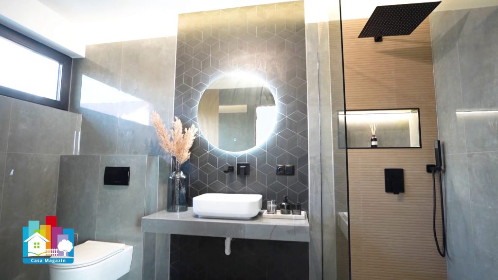 Oglinzile, accesoriile și formele bateriilor pot schimba rapid atmosfera. Chiar și într-un decor minimalist, câteva elemente bine alese pot transforma baia într-un spațiu modern, adaptat stilului de viață al familiei.