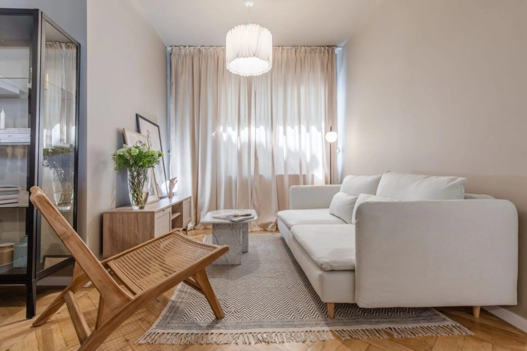 Mobilierul masiv, în culori închise, poate încărca vizual spațiul și reduce luminozitatea
