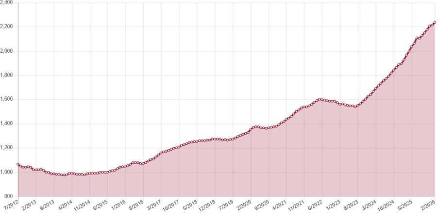 PREȚUL APARTAMENTELOR 2012-2026 SURSA: IMOBILIARE.RO