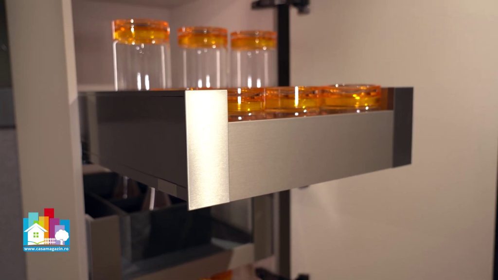Sistemele de ridicare, sertarele personalizate și mecanismele invizibile transformă spațiul într-un loc mai curat, mai sigur, mai intuitiv.