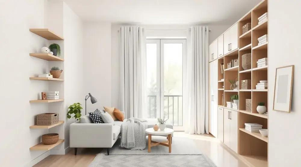 Spațiile mici necesită organizare eficientă. Rafturile suspendate, bibliotecile deschise și dulapurile înalte sunt soluții utile. Este important să folosești spațiul vertical pentru a elibera podeaua. În același timp, evită supraîncărcarea rafturilor pentru a păstra un aspect aerisit.
