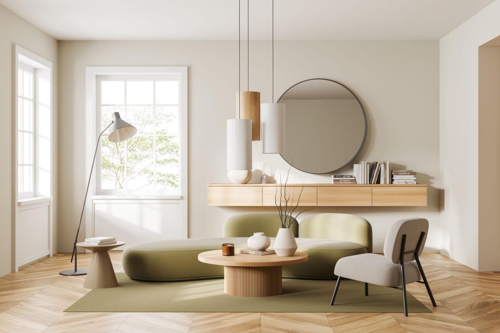 În apartamentele moderne, livingul este adesea integrat cu bucătăria sau holul. Pentru a păstra funcționalitatea, este importantă delimitarea zonelor. Poți folosi covoare, culori diferite sau chiar un paravan decorativ pentru a separa vizual spațiile fără a le închide complet. Un truc simplu și eficient este utilizarea oglinzilor. Acestea reflectă lumina și creează impresia unui spațiu mai mare. O oglindă mare, amplasată strategic, poate dubla vizual dimensiunea camerei. Este una dintre cele mai accesibile soluții pentru livingurile mici.