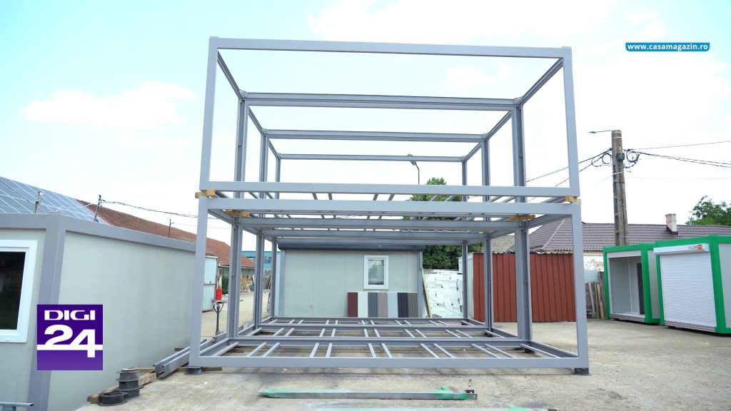 Locuințe modulare din containere. În atelier, totul pornește de la profile metalice tăiate milimetric. „Controlăm fiecare etapă intern, de la tabla brută la produsul final,” explică Bogdan Guțu, managerul unei firme specializată în construcția de locuințe modulare din containere.