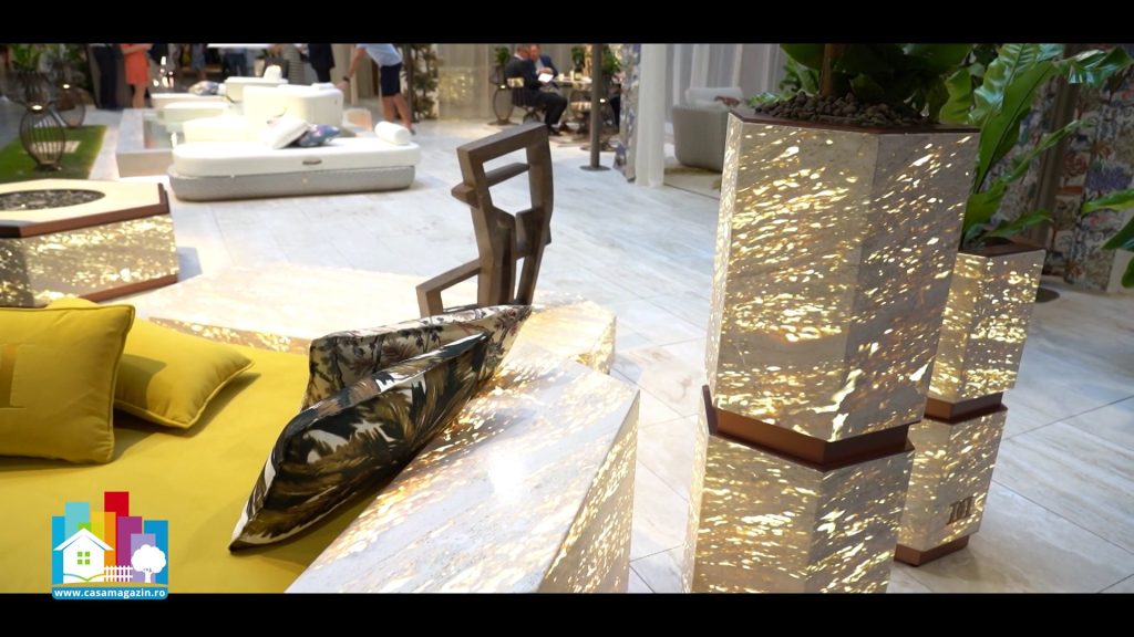 Noutatea adusă de producătorii italieni constă în folosirea travertinului spongios, o piatră cu structură poroasă, care filtrează lumina și creează efecte vizuale spectaculoase. Acest tip de material oferă un caracter sculptural pieselor de mobilier și transformă mesele, băncile sau corpurile decorative în adevărate obiecte de artă.