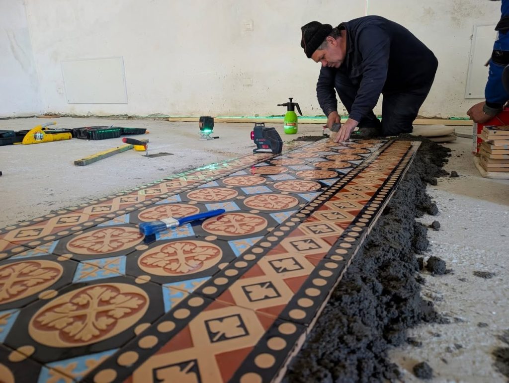 Pentru proiectul actual de restaurare, specialiștii au decis să respecte cât mai fidel tehnologia originală. Matrițele folosite pentru plăcile ceramice sunt aceleași utilizate la finalul secolului al XIX-lea. De asemenea, modul de montare a pardoselii este realizat conform recomandărilor producătorului și ale restauratorilor, pentru a asigura stabilitatea pe termen lung a suprafeței.