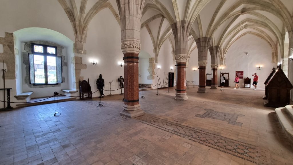 Un punct central al restaurării îl reprezintă Sala Cavalerilor, una dintre cele mai spectaculoase încăperi ale castelului. Situată la parterul edificiului, sala impresionează prin dimensiuni și prin rolul ceremonial pe care l-a avut în trecut. Restaurarea acesteia a urmărit refacerea aspectului pe care îl avea la sfârșitul secolului al XIX-lea, când castelul a trecut printr-o altă restaurare majoră.