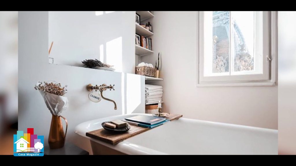 Acum, cada tronează ca o piesă de artă, transformând baia într-o scenă de film franțuzesc.