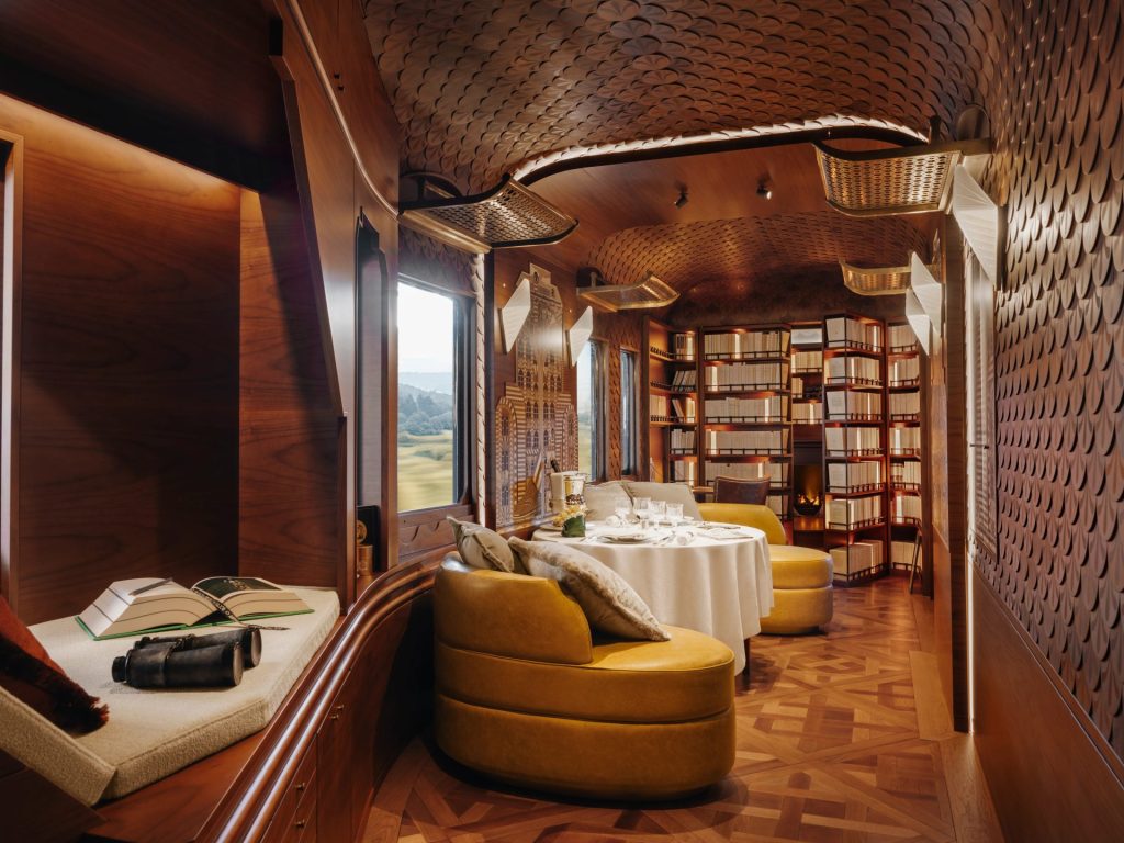 Un detaliu rar întâlnit chiar și în hotelurile de cinci stele este biblioteca personală. Vagonul include sute de volume atent selectate, creând un spațiu ideal pentru lectură în timpul călătoriei. În plus, există o cameră de ceai ascunsă, un element-surpriză care transformă experiența într-un ritual exclusivist.